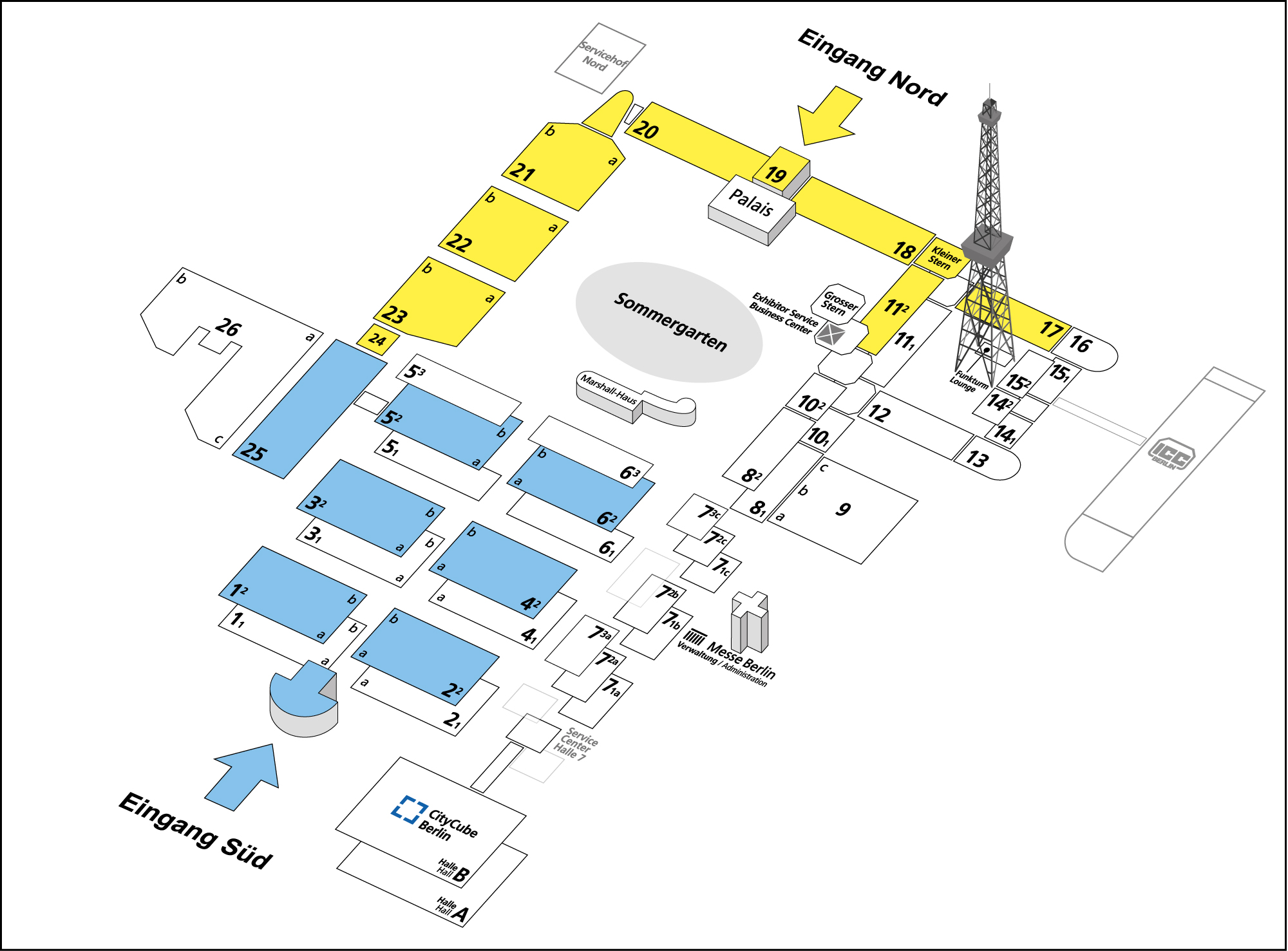 Das Gelände der Messe Berlin steht Ihnen hierzu mit fast 110.000 m² Ausstellungsfläche für Ihre Unternehmenspräsentation zur Verfügung. Die beachtlichen Indoorflächen in den verschiedenen Messehallen und Outdoor bieten außergewöhnliche und größtmögliche Flexibilität in der Gestaltung Ihres Messestandes.